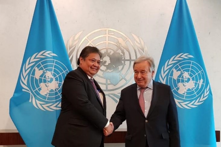 New York - Pertemuan bilateral secara tatap muka antara Menteri Koordinator Bidang Perekonomian Airlangga Hartarto dengan Sekretaris Jenderal PBB Antonio Guterres telah dilakukan pada Rabu (26/10) di Markas Besar PBB, New York. Pertemuan tersebut turut dihadiri oleh Menteri Perindustrian, Wakil Tetap/ Dubes RI New York, beserta Delegasi Indonesia. Pertemuan tersebut membahas berbagai dinamika geopolitik dan geoekonomi, dampak krisis global, dan perkembangan persiapan penyelenggaraan KTT G20 di Bali.